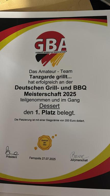 Ausgewählt von Hitradio Antenne 1 für die Grillmeisterschaft war das Team „Tanzgarde kocht.“ Gut vorbereitet, mit einem Kofferraum voller Zutaten, fuhren Conny Eberwein, Vivian Kopf, Iris Diaz Garcia und Nicole Glück nach Reutlingen, dem Austragungsort des Wettbewerbes. Nach einem Bewertungsgleichstand zwischen zwei Teams entschied Minister Hauk, dass beide Teams das Preisgeld von 40000 Euro für ein Sommerfest bekommen sollen. Im September folgten 170 Weilheimer der Einladung zu einem Grillfest, das bei schönstem Spätsommerwetter stattfand. Das restliche Preisgeld und die zahlreichen Spenden gingen an den Tübinger Förderverein für krebskranke Kinder.