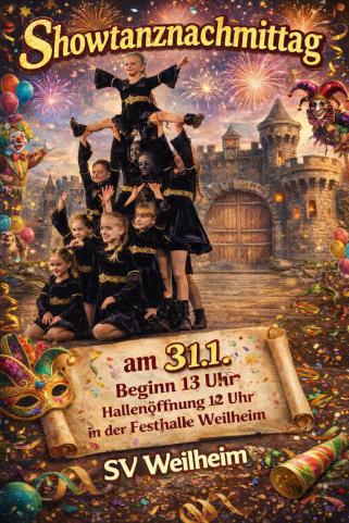 Am Samstag, 31. Januar, wird die Turn- und Festhalle zur närrischen Tanzbühne! Die Tanzgarde Weilheim lädt herzlich zum Showtanznachmittag ein.